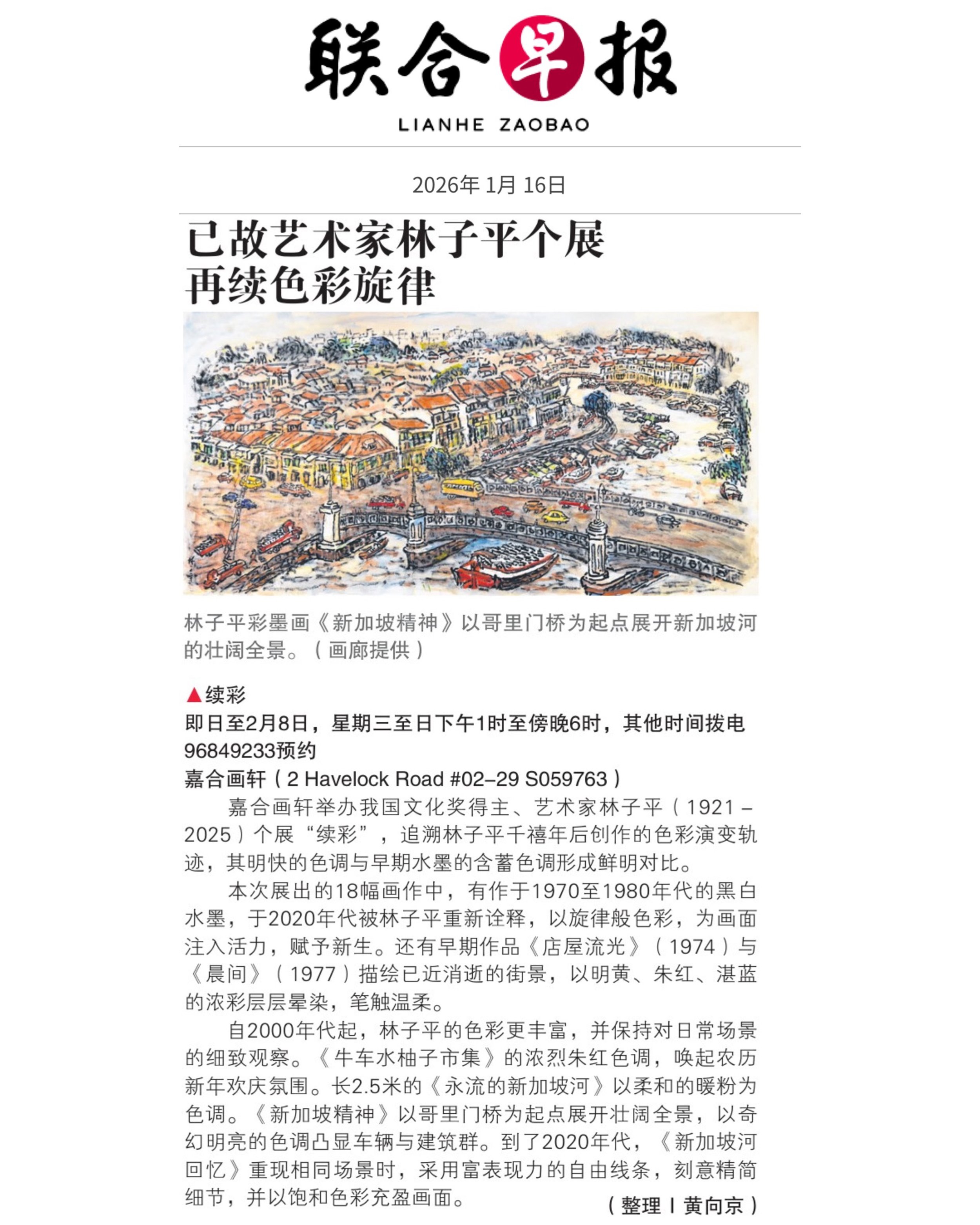Confluence Art Space ushers in the new year with “Coloured Continuum”, a solo exhibition by the late Cultural Medallion recipient Lim Tze Peng, one of the most significant ink artists in Singapore’s art history. Coloured Continuum traces the chromatic evolution of Lim’s post-millennial practice, distinguished by heightened vibrancy in contrast to the understated palette in his formative ink works. The exhibition brings together a collection of these boldly coloured late works as a heartfelt tribute to the late artist, celebrating the ebullient persona that shaped his later practice and the luminous vitality that continues to define his artistic legacy. Of the 18 paintings featured, eight pieces are particularly significant: first conceived by Lim in the 1970s and 1980s, these works were later reawakened by the artist in the 2020s, enlivening the compositions with melodic infusions of colour that breathe renewed life into the black-and-white portrayals of early Singapore.