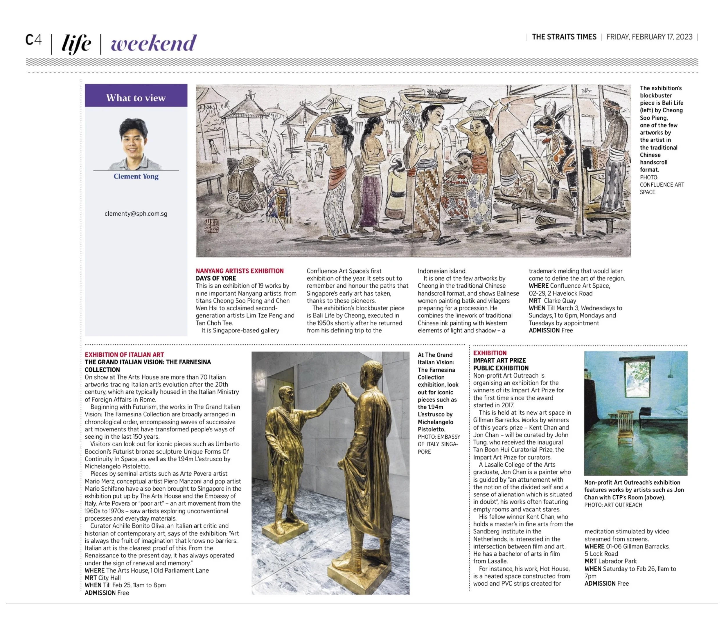 “Days of Yore”, a group exhibition of 19 exquisite works by nine Nanyang artists — the titans of Singapore art Chen Wen Hsi, Cheong Soo Pieng, Lim Cheng Hoe, and Liu Kang, as well as important second-generation artists Lim Tze Peng, Tan Choh Tee, Siew Hock Meng, Leng Joon Wong, and Wee Shoo Leong. There is art that has come to influence the present, art that recorded scenes long gone, and art which has us indulging in nostalgic reminiscence. Days of Yore features art from the three categories, all of which represent significant moments in time. Through art, we can express, remember, and honour them.